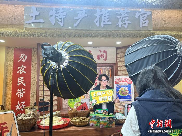 农博会现场,土特产推荐官正在直播。 蓝伊旎 摄
