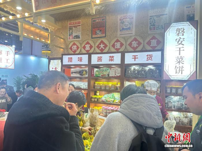 “供销大院”展馆内,香甜软糯的手工麻糍、香气四溢的“两头乌”包子、地道的梅干菜饼以及咸菜肉粽等农家好物,吸引了不少市民游客驻足品尝、购买。据了解,这些地道小吃的不少食材来自一辆辆穿梭于山区与城市的“供富大篷车”。